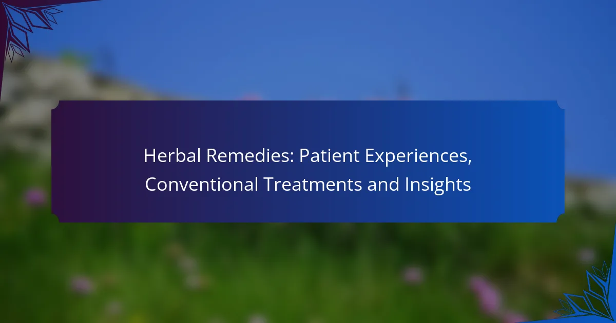 Herbal remedies offer a natural approach to managing various ailments, often complementing conventional treatments. While they focus on holistic healing with potentially fewer side effects, patient experiences can vary significantly, reflecting diverse health journeys and outcomes. Understanding these insights can help individuals make informed decisions about their treatment options.
